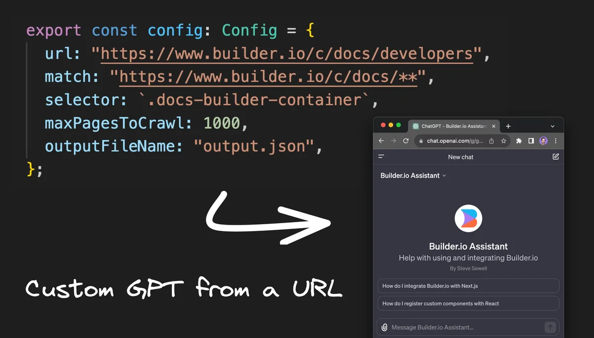 GPT Crawler支持从网站创建自定义 GPT,只需要提供一个站点 URL,它将抓取该站点 URL 并将其用作 GPT 的知识库。用户需要将爬虫生成的数据文件output.json上传到自定义ChatGPT,就可以访问生成的知识。